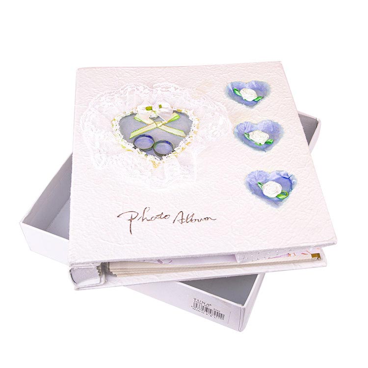 Farklı modelleri bulunan, istenilen ebatlarda düğün, nişan vb. fotoğraflarınızı sergileyebileceğiniz, toptan taş süslemeli kutulu dantelli yapışkanlı fotoğraf albümü.