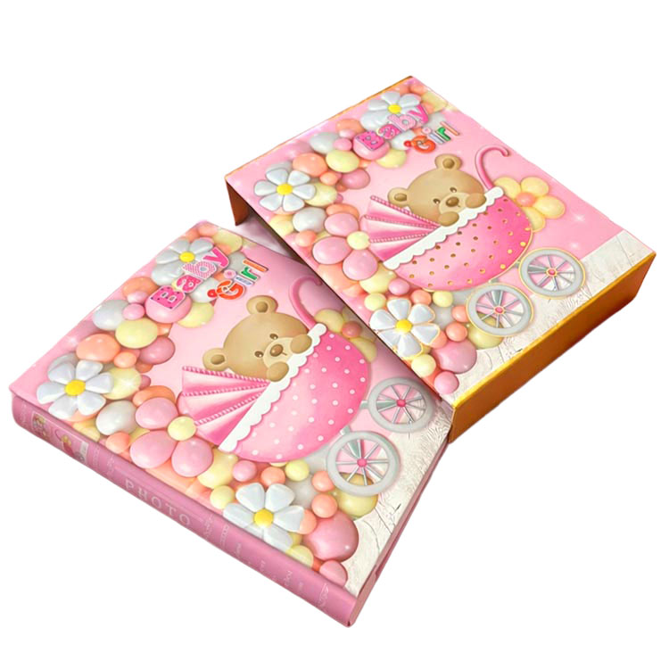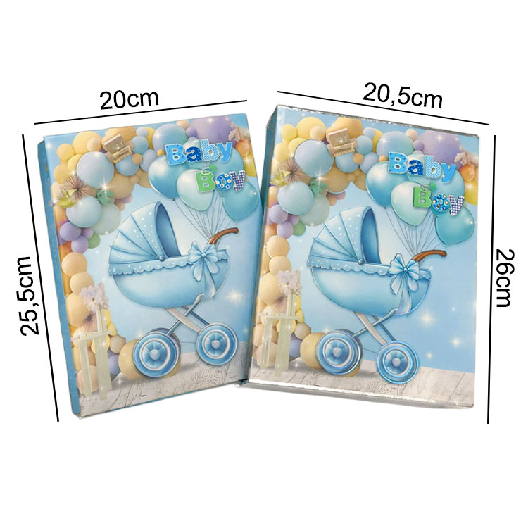 Kaliteli malzemeden üretilmiş, 200 adet fotoğraf kapasiteli, 10x15cm yatay fotoğraflar için uygun, pembe ve mavi renk seçeneklerine sahip toptan kutulu bebek fotoğraf albümüdür.