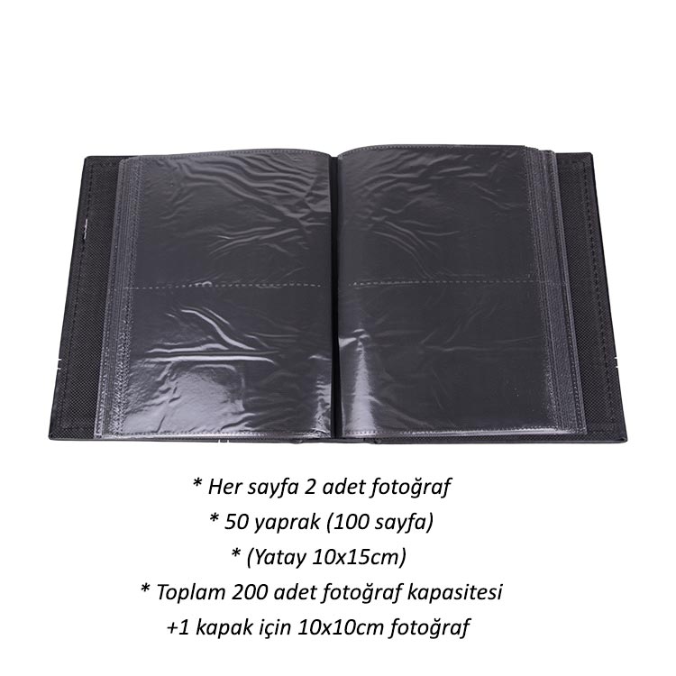 Deri malzemeden üretilmiş, 10x15 ebatlarında 200 adet fotoğraf alabilen, toptan pencereli fotoğraf albümü.
