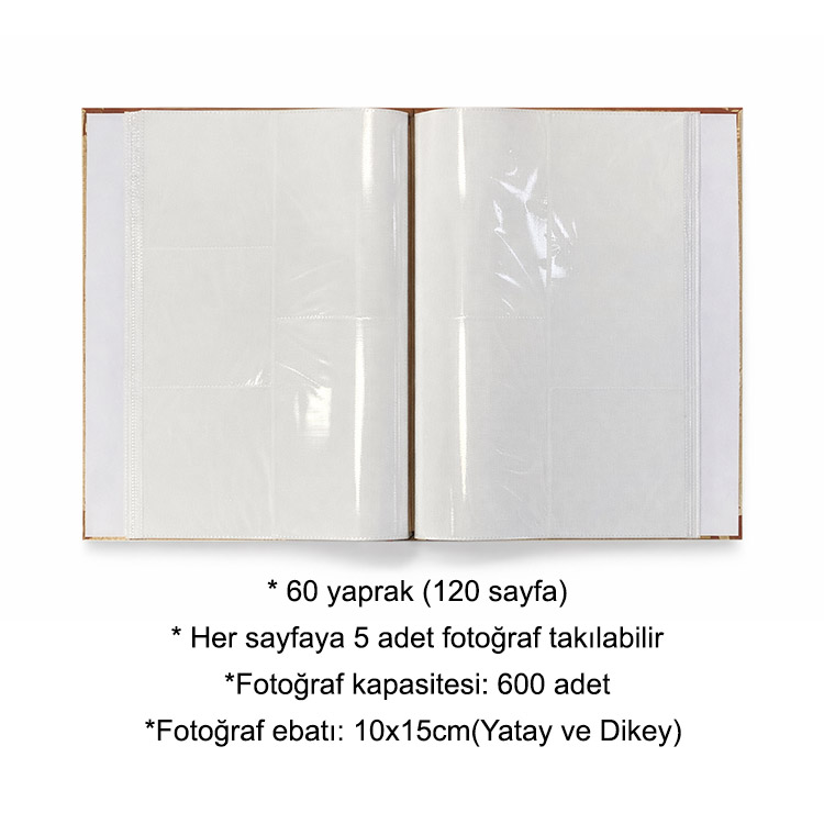 Kaliteli malzemeden üretilmiş, içerisine 10x15 cm ebatlarında 600 adet fotoğraf sergilenebilen, kutulu hediyelik fotoğraf albümü.