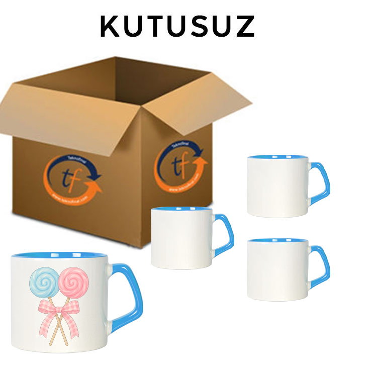 1 Koli Kutusuz Süblimasyon Porselen Afili Mavi Kupa Bardak