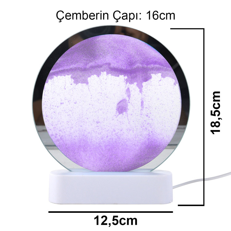 360° dönebilme özelliği sayesinde her çevirdiğinizde, sıvı içerisindeki renkli kumlar akarak farklı desenler ve manzaralar oluşturur. Kumların akışı büyüleyici sahneler ortaya çıkarır. Bu manzaraları izlemek, huzur ve rahatlama hissi verir. Doğum günleri, yılbaşı, özel günler ve kutlamalar için eşsiz bir hediye alternatifi sunar. Zarif ve kalın çerçevesi ile dekoratif tabanı, ev ve ofis ortamlarına estetik bir görünüm kazandırır. Ayrıca kablolu ve ışıklı yapısı sayesinde gece ve gündüz ortamlara şık bir atmosfer katar.