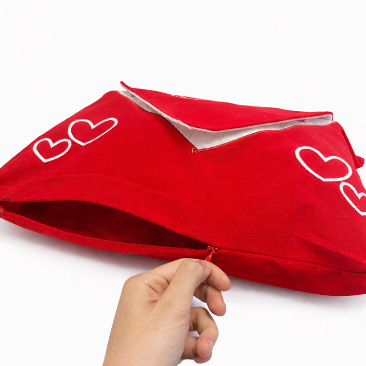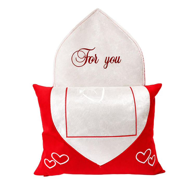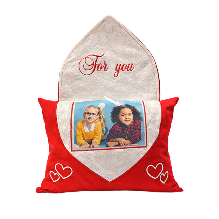 İçerisine 13×18 cm ölçülerinde fotoğraf yerleştirilebilen, toptan kırmızı mektup yastık kılıfı.
