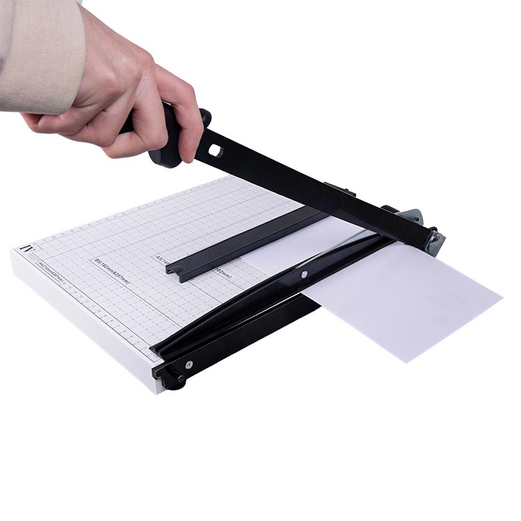 A4 Giyotin Kağıt Kesme Makinesi, A4, B5, A5, B6 ve B7 ölçülerindeki kağıtlar için uygundur. Metal kasa ve dayanıklıdır. Ayarlanabilir ölçü aparatı ile 12 yaprağa kadar hızlı ve düzgün kesim sağlar. Giyotin kolu çıkarılabilir ve bileylenebilir. Kesme doğruluğu için ayarlanabilir, kilitlenebilir standart boyut kılavuzu bulunur. Hem profesyonel hem de kişisel kullanım için uygundur. Güvenlik için özel tasarlanmış emniyet düğmesi bulunur. Maksimum verimlilik için yaklaşık 12 yaprak (90 g/m²) kağıt kesilebilir. PVC veya demir tel gibi sert malzemelerden kaçınılmalıdır. Kağıt kesme giyotini kullanırken dikkatli davranmak ve kağıdı doğru yerleştirmek önemlidir. 2 mm (+/-) küçük kesim hataları meydana gelebilir.