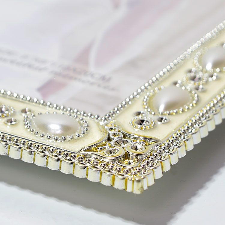 15x21cm ebat seçenekleri bulunan, üzerinde çerçeveyi daha kaliteli gösteren inci boncuk taşları bulunan masaüstü fotoğraf çerçevesi.