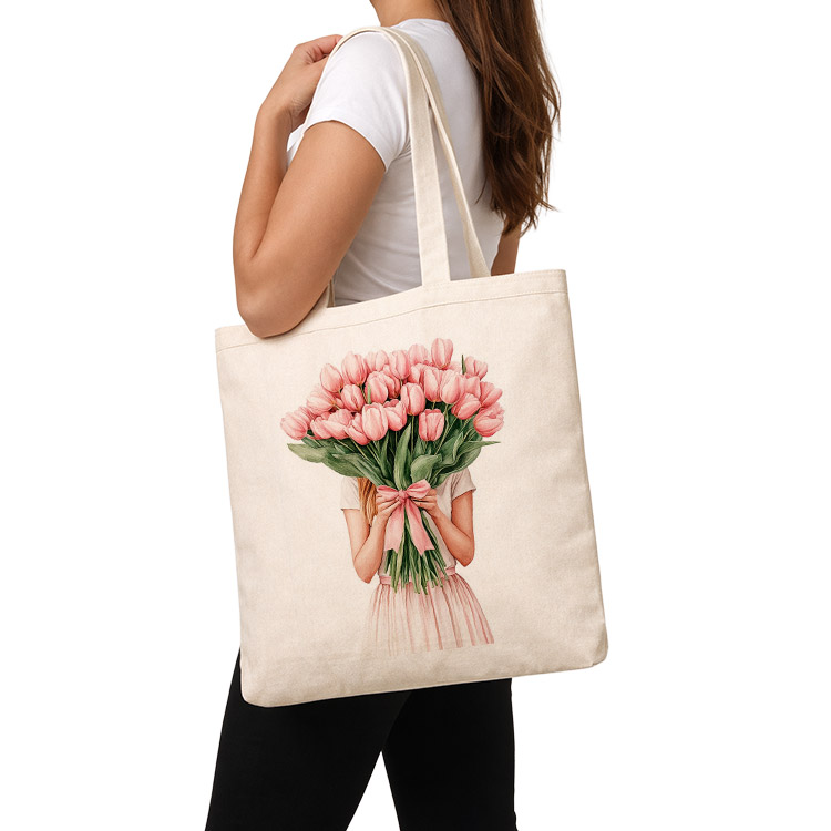 Toptan Keten Fiora Askılı Bez Çanta - 34,5x40cm