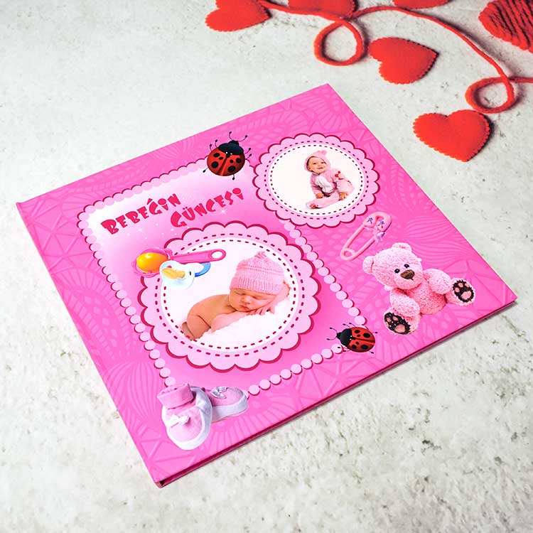 Bebeğinizin dünyaya geldiği andan itibaren ilk senesine ait tüm hatıraları, küçük ama anlamlı notları, birbirinden kıymetli fotoğrafları sergileyebileceğiniz kişiye özel kız bebeğin güncesi anı defteri.