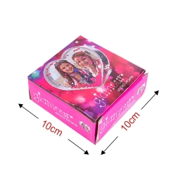 Kristal görünümüyle dikkat çeken, içerisinde gri parlak kalplerin ve süslerin bulunduğu kar küresi, çapı 10 cm olan toptan fotoğraflı kar küpesi.