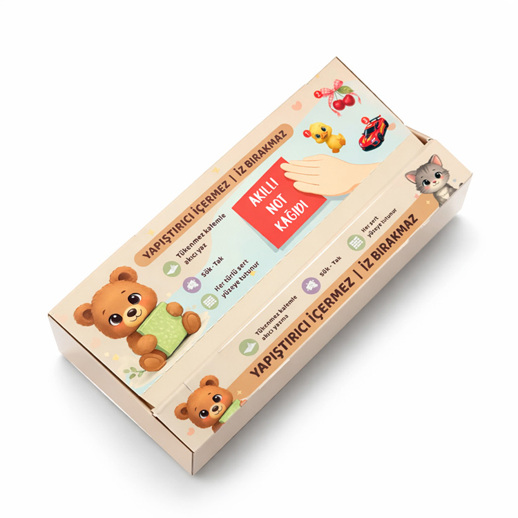 Kutulu akıllı not kağıtlarımız Standı kolayca kurarak kırtasiyelerde, hediyelikçilerde, oyuncakçılarda ve daha birçok yerde satışını gerçekleştirebilirsiniz.