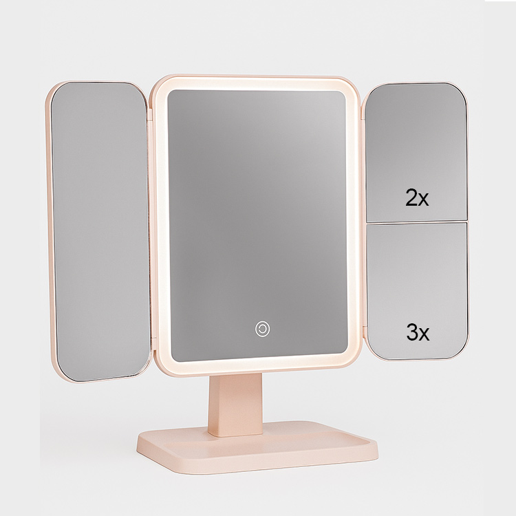 Toptan LED Işıklı Katlanabilir Şarjlı Pembe Makyaj Aynası