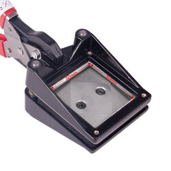 Pasaportlar, ehliyetler ve kimlik kartlarında yaygın olarak kullanılan 5x5 cm boyutlarındaki fotoğrafların hassas ve simetrik bir şekilde kesilmesi için özel olarak tasarlanmış vesikalık giyotin makası.
