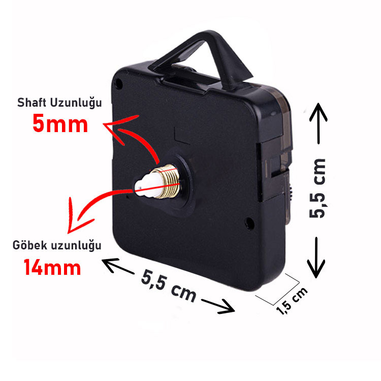 5mm shaft uzunluklu duvar ve masaüstü saat ürünlerinizde kullanabileceğiniz akar ve tik tak saat mekanizması.
