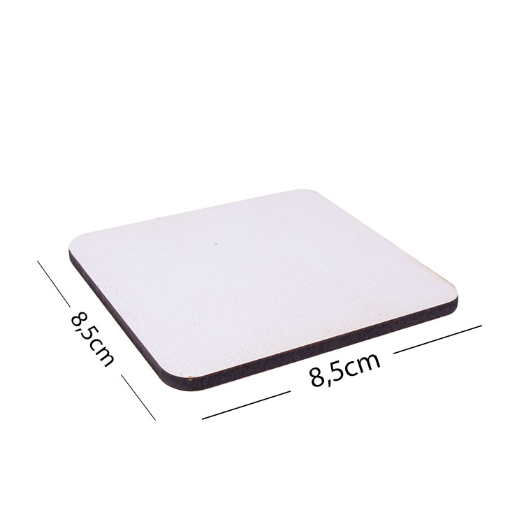 2 farklı ebatı bulunan, süblimasyon baskıya uygun, adf kare toptan süblimasyon bardak altlığı 5'li paket olarak satılmaktadır.