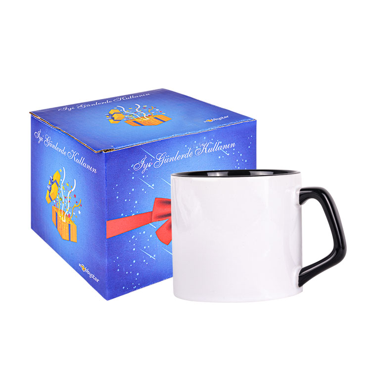 Toptan Süblimasyon İçi ve Kulplu Siyah Afilli Porselen Kupa Bardak - Kutulu