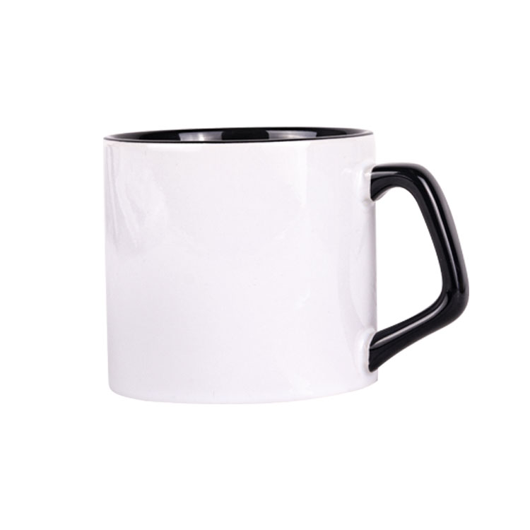 Süblimasyon baskıya uygun, toptan içi ve kulpu siyah afilli beyaz porselen kupa bardak.