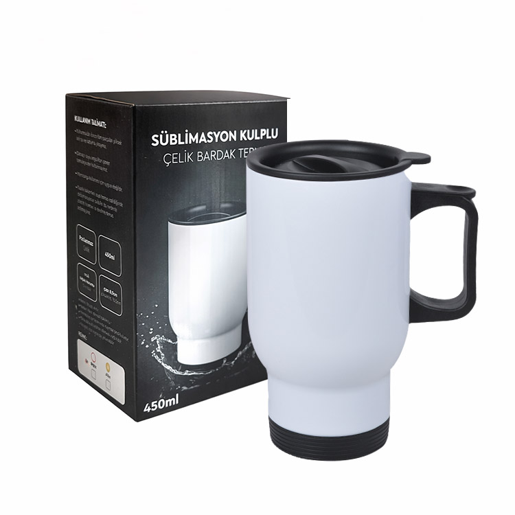 Toptan Süblimasyon Çelik Kulplu Bardak Termos - 450mlt