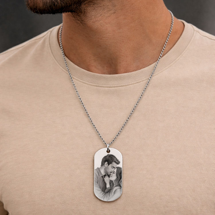 Süblimasyon baskıya uygun zincirli künye kolye üzerine kişiye özel baskılar yaparak satışa sunabileceğiniz özel bir hediye seçeneği.
