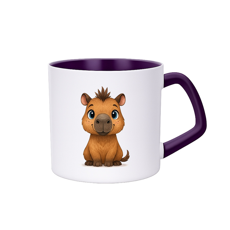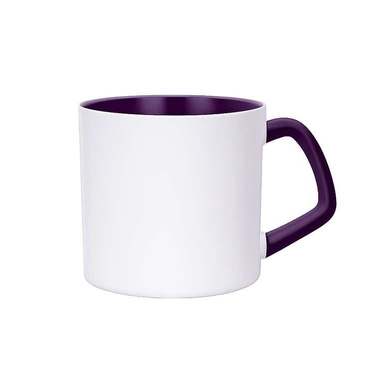 Süblimasyon baskıya uygun, toptan içi ve kulpu dark mor afili beyaz porselen kupa bardak.