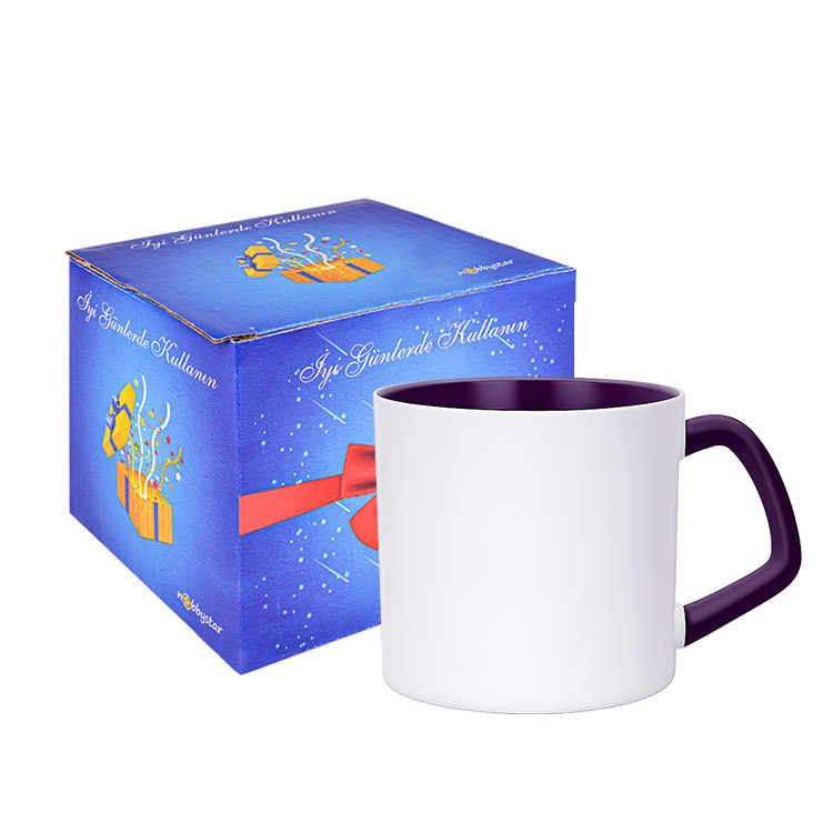 Toptan Süblimasyon Porselen Afili Dark Mor Kupa - Kutulu