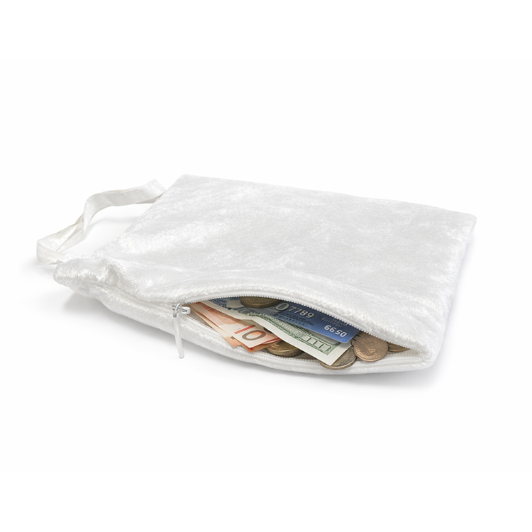 İpek kumaştan üretilmiş sublimasyon baskı sistemine uygun fermuarlı el çantası.