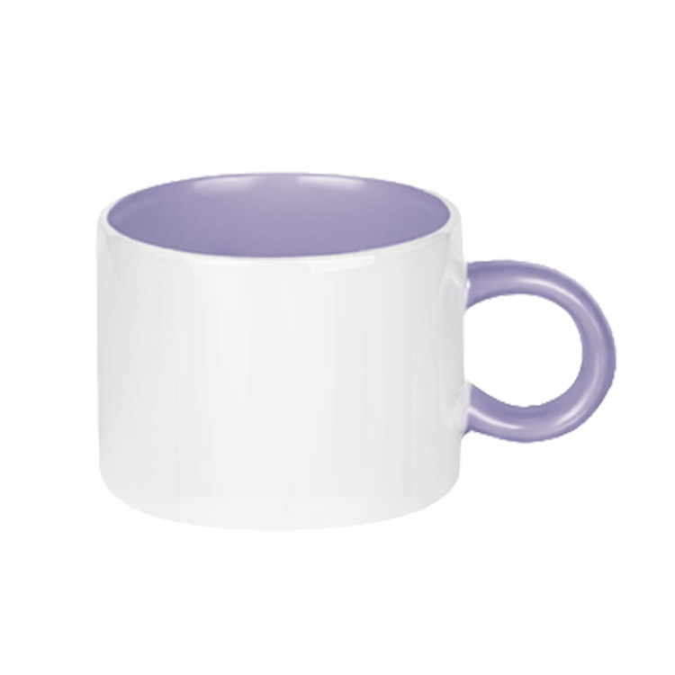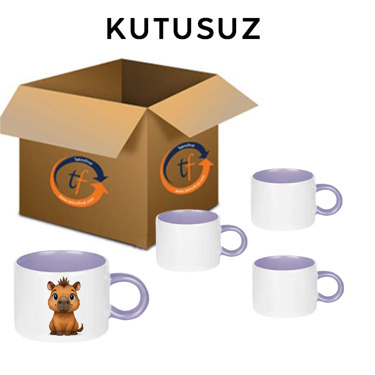 1 Koli Kutusuz olarak satılan hem süblimasyon hem de lazer baskıya uygun, toptan kulpu ve içi lila renkli motto porselen fincan.