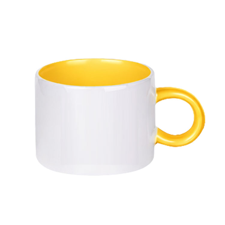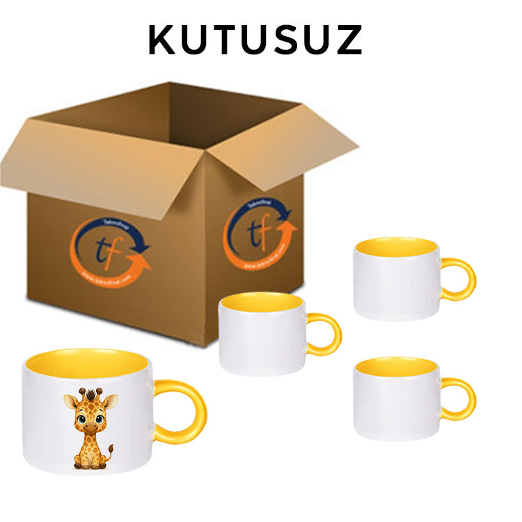 1 Koli Kutusuz olarak satılan hem süblimasyon hem de lazer baskıya uygun, toptan kulpu ve içi sarı renkli motto porselen fincan.