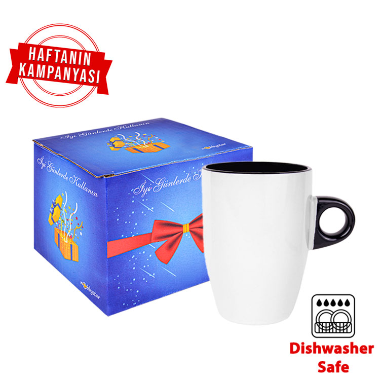 Süblimasyon Porselen Siyah Latte Kupa Bardak - Kutulu