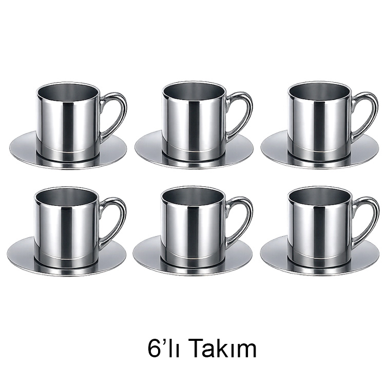 Süblimasyon transfer baskıya sistemine uygun, kişiye özel olarak hazırlayıp müşterilerinize sunabileceğiniz, porselen 6'lı aynalı gümüş türk kahvesi fincanı takımı. Ürünlerimiz toptan ve baskısız olarak satılmaktadır.