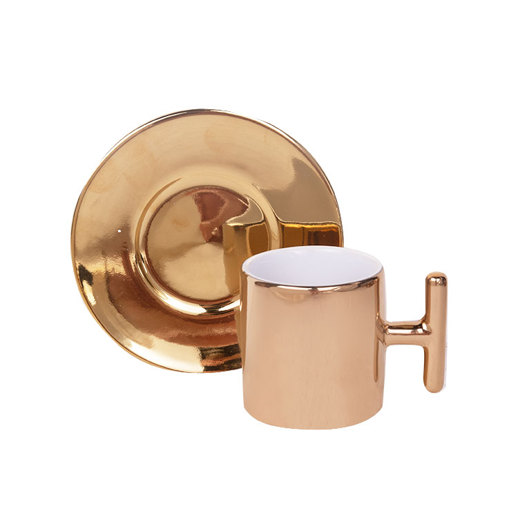Süblimasyon baskı sistemine uygun, T Kulplu metalik gold türk kahvesi fincan takımı.