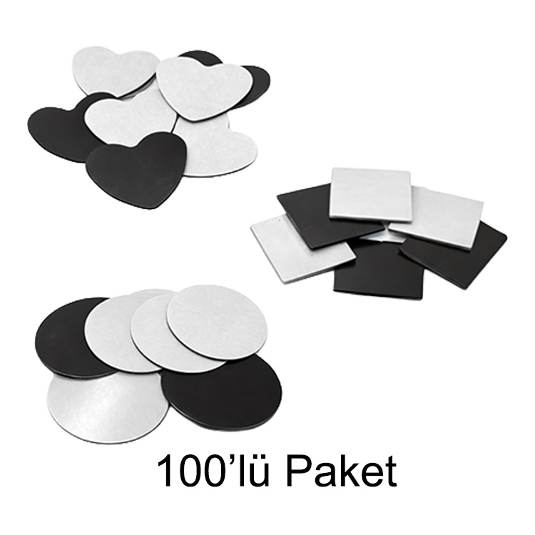 Yuvarlak, kalp, ve kare buton rozetlerde kullanabileceğiniz yapışkanlı magnetler. 100’lü paket halinde satılmaktadır.