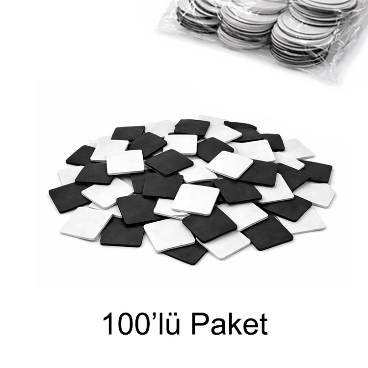 Yuvarlak, kalp, ve kare buton rozetlerde kullanabileceğiniz yapışkanlı magnetler. 100’lü paket halinde satılmaktadır. Beyaz koruyucu yüzeyi çıkarıp, yapışkanlı alanı dilediğiniz ürünlere yapıştırarak kullanabilirsiniz. Buzdolabı magneti veya foto magneti olarak kullanabilirsiniz.