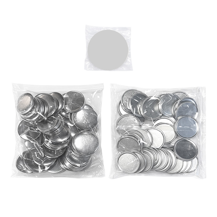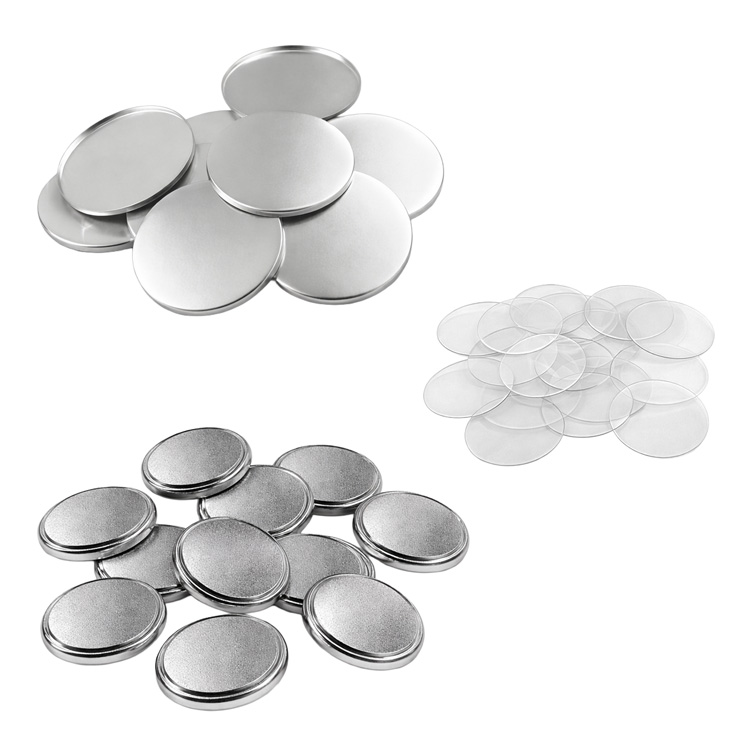 Rozet baskısı yapabileceğiniz 100'lu paket olarak satılan toptan yuvarlak buton rozet malzeme seti.